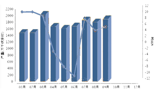 2016年1—9月全国铅酸蓄电池行业累计完成产量同比增长5.84%。其中:9月份完成产量同比增长4.91%。