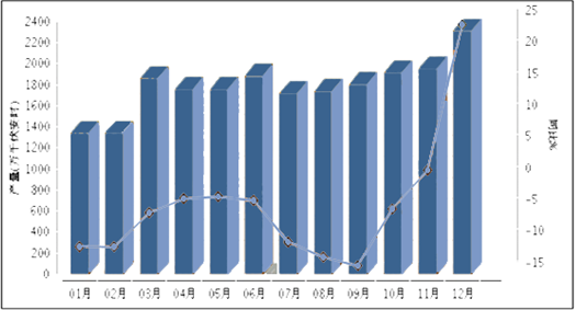 相关数据显示,2015年1-12月全国铅酸蓄电池行业累计完成产量同比增长-4.78%。其中:12月份完成产量同比增长24.49%。